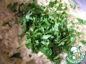 Добавить яйца, растительное масло, соль, перец и базилик,