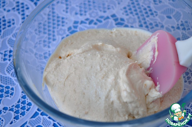 Для крема смешать вместе: творог, половину абрикосового варенья, ванилин, цедру лимона и ложку ликера. Взбить блендером, как на пюре. Взбить сливки и вмешать в творожную массу.
