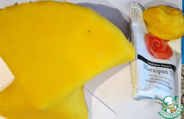 Из красного марципана раскатала "оболочку сыра"