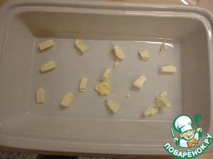Духовку включаем на 180 гр. В форму с крышкой выкладываем кусочки сливочного масла.