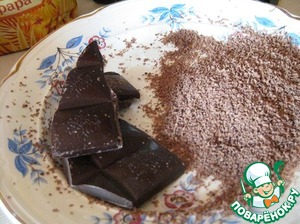 Шоколад натереть на мелкой терке или просто взять шоколадную крошку.