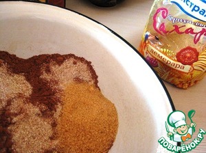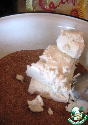 - Сахар коричневый (100 г в соус, 50 г в тесто) — 150 г