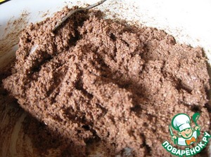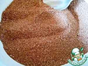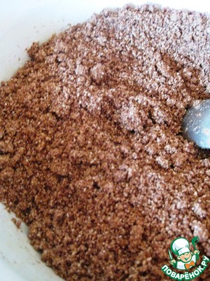 Смешать молотую гречку с какао, добавить 2 ст. л. коричневого сахара, шоколад измельченный, разрыхлитель.