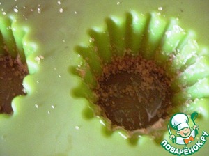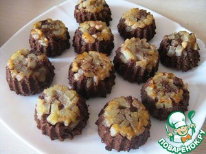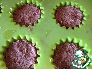 Сверху выложить тесто и слегка придавливать его сверху в формах. Выпекать в разогретой до температуры 180 град. С духовке в течение 30 минут.