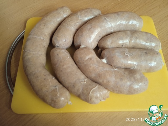 Рецепт «Домашние свиные колбаски с тушеной капустой»: