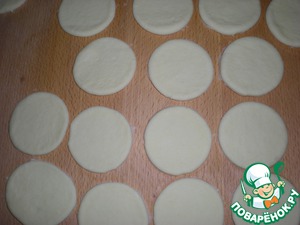 Выдавить из теста кружки диаметром 5-6 см. У меня это тонкий стакан.