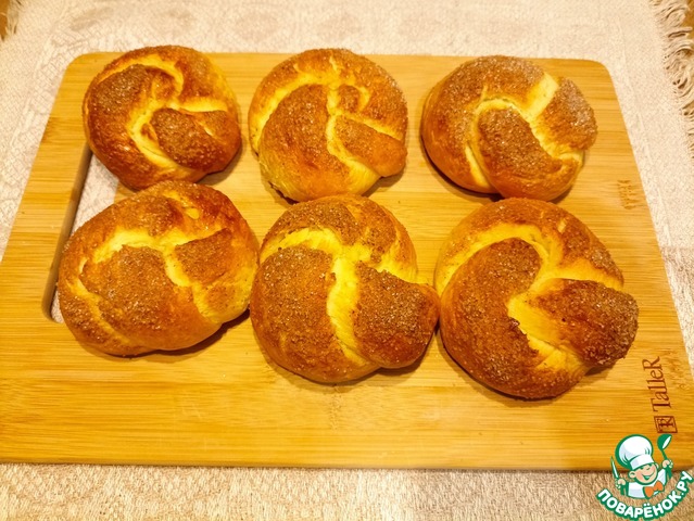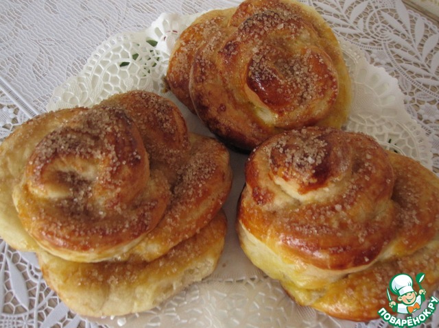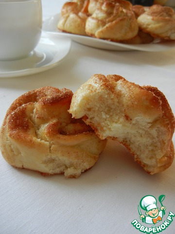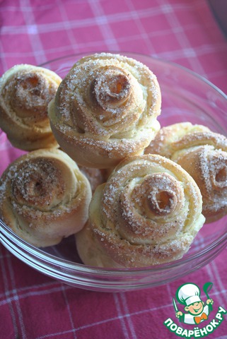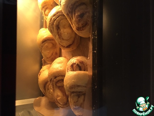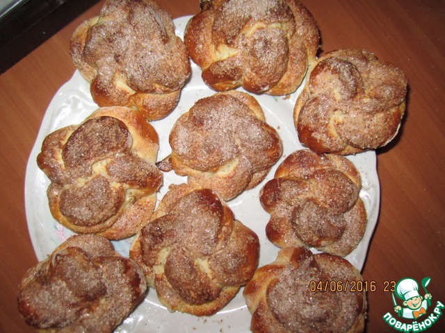 Смешайте корицу с сахаром и посыпьте сверху на булочки.