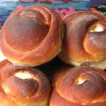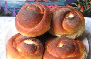 После расстойки смажьте цветочки взбитым яйцом или сметанной смесью. Смесь я делала так: 1 ст. л. сметаны смешать с 1 ч. л. муки и 1 ч. л. растопленного сливочного масла.
