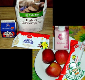 Ингредиенты для рулета. Мука ржаная. Сливки. Творог я беру каждый раз разный. В оригинале для начинки нужно использовать банан. Сегодня у меня рулет с добавлением яблок.