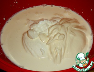 Для начинки взбивала сливки вместе с творогом (можно по отдельности, а потом соединить).