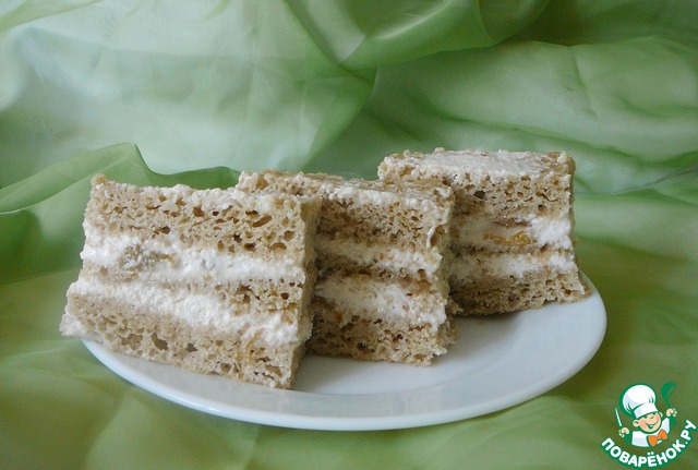 На этот раз, время я не соблюдала ( а что уж теперь))). За 15 минут тесто приняло четкую форму. Я достала корж, остудила. А корка себе верна, зараза, все равно местами осела, размякла. Срезала я всякое-разное, поделила корж на три части, переслоила кремом. Результат на лицо, вернее на экран!