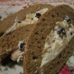 Могу сказать, ржаная выпечка мне нравится, но в данной случае мой "бисквит" получился то ли грубоват то ли простоват на вкус. О нежности речь не шла, как хлеб в разрезе, сами видите. А точнее и не скажу. Расстроилась.