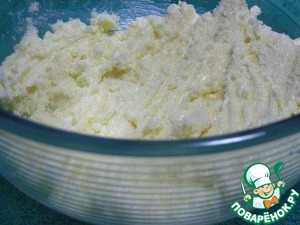 Размягченное масло разотрем вместе с сахаром до однородного состояния.