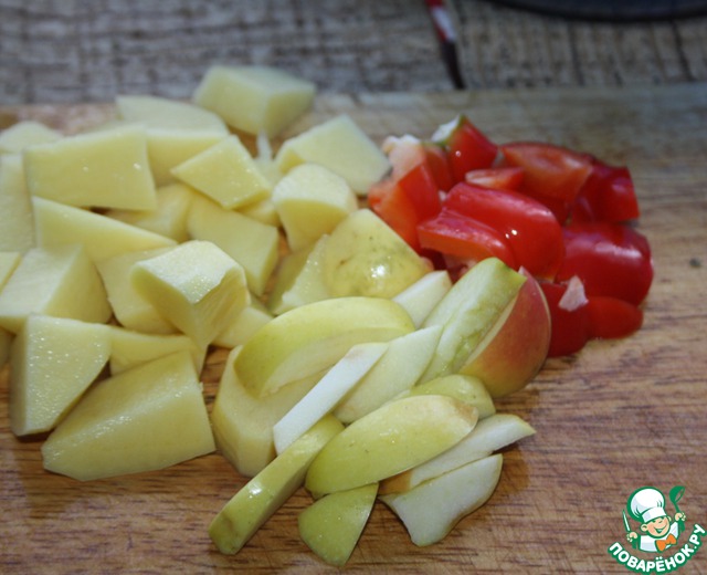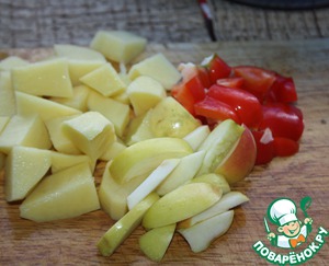 • Крупно нарезать болгарский перец, картофель, яблоки.