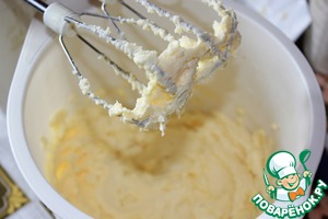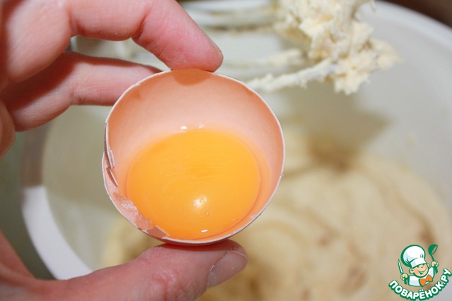 Сливочное масло и 125 г сахара слегка взбить в комбайне на медленной скорости, затем добавить 1 желток.