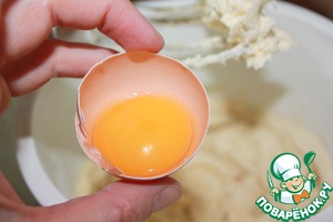 Охлажденные белки немного посолить, взбить в крепкую пену и вмешать их в тесто.