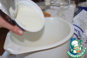 Муку перемешать с разрыхлителем. Отделить белки от желтков. Белки отправить в холодильник.