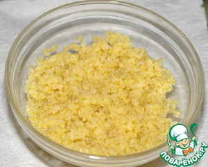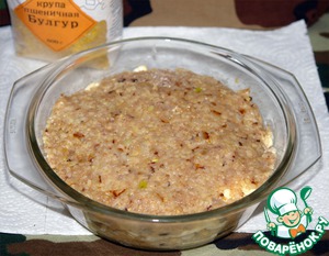 • Булгур залить кипящей водой и оставить набухать на 10-15 минут.