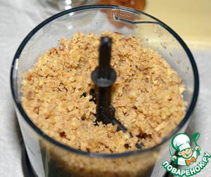 Каштаны помыть, надрезать крест накрест, отварить в течение 20 минут в подсоленной воде. Очистить и размять в пюре. Здесь меня каштаны подвели. По видимому, они залежались в магазине и подсохли, после отваривания они очень плохо чистились и размять в пюре их не представлялось возможным, я измельчила их в блендере, получилась как бы крупная крупка, похожая размерами на булгур, но в итоге так оказалось даже интереснее в готовом блюде.