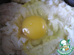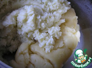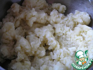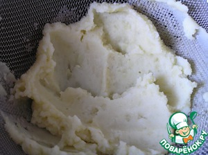 Картофель отварить "в мундире", очистить, размять вилкой, протереть через сито.