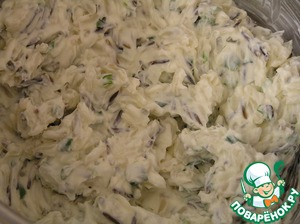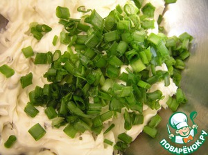 Творожный сыр смешать с зеленым луком.