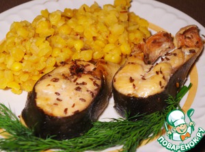 Рецепт «Кусочки горбуши с тмином и гарниром из гороха»: