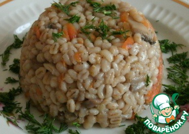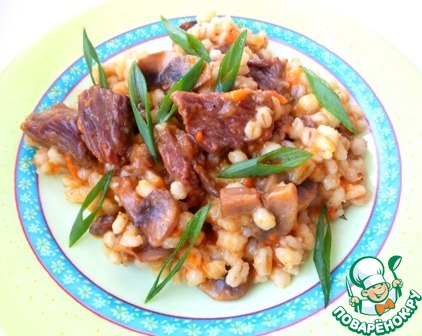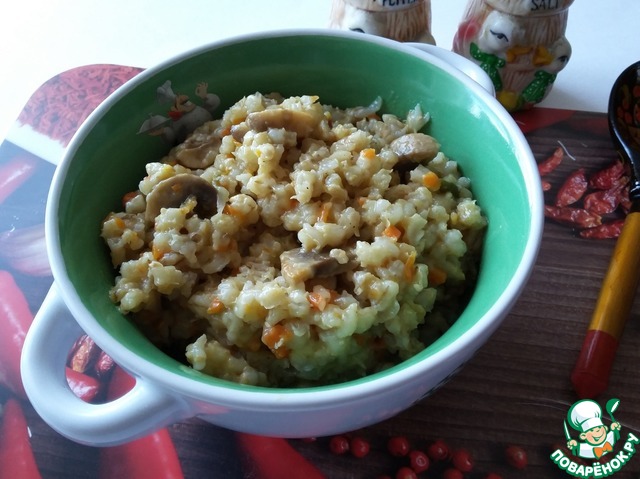 "Русский плов" - перловка с грибами. Перловка, к сожалению, не самая любимая крупа в наше время, а жаль... очень жаль. Ну, не зря же древние славяне дали ей такое имя: перловка от "перлы" - жемчужины))) Блюдо получилось, на удивление, невероятно вкусным.