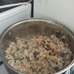 Первый раз в жизни готовила перловку, как второе, а не как добавление в суп. Готовила с лисичками. Все, что надо было жарить - потушила на воде (масло закончилось), а в конце положила большую ложку сливочного масла. Плита у меня электрическая, томила на единичке.