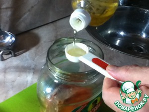 Осталось налить в банку 3 столовых ложки подсолнечного масла, я использую рафинированное и дезодорированное, т. е. очищенное и без запаха, т. к. надо наслаждаться только ароматом нежнейшей форели, исключая всё постороннее.