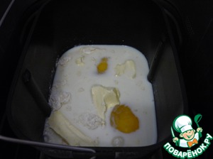 В хлебопечку закладываем ингредиенты согласно инструкции. Если нет хлебопечки, замешиваем тесто вручную.