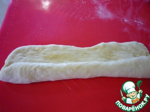 Растягиваем каждый кусочек в прямоугольник (примерно 12 х 26 см)