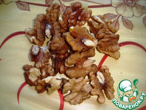 Кочанчик цикория разбираем по листикам, грецкие орехи крупно рубим.