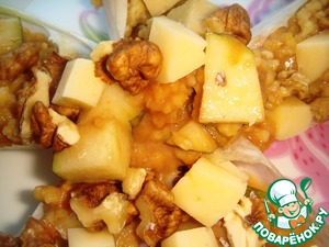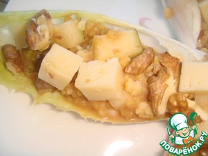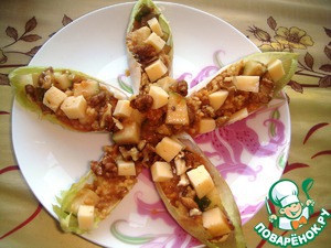 Рецепт «Закуска из карамельной груши с пшенкой, грецкими орехами и сыром в листиках цикория "Мечта Солдата"»: