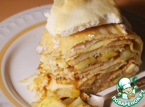 Вкусный и нежный блинный пирог с яблочно-банановой начинкой для любителей блинов, яблок и бананов. Блины на манке толстенькие, с легким ароматом дрожжей в сочетании с сочной кисло-сладкой начинкой прекрасно подходят к ароматному чаю или кофе, для неспешной беседы.