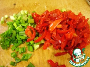 Добавить перец и лук и тушить 10-15 минут. В конце посолить, приправить карри и добавить измельченный чеснок.