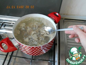 • Снять пену при закипании и варить на медленном огне 30 мин. до готовности.