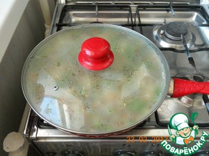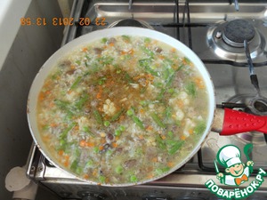 • Накрыть крышкой и варить на медленном огне до готовности 20 мин. При необходимости добавить бульон.