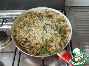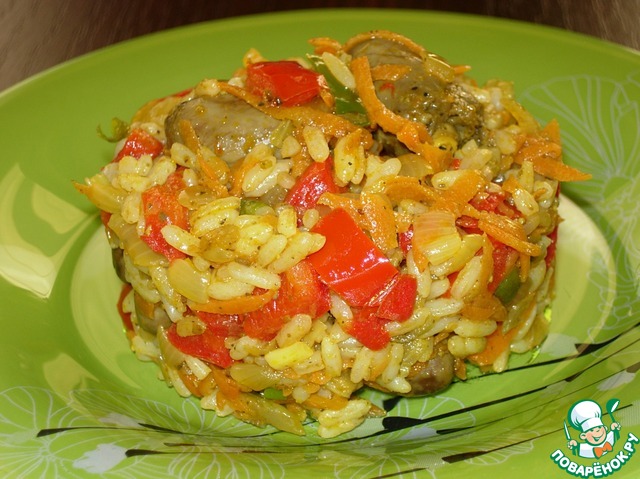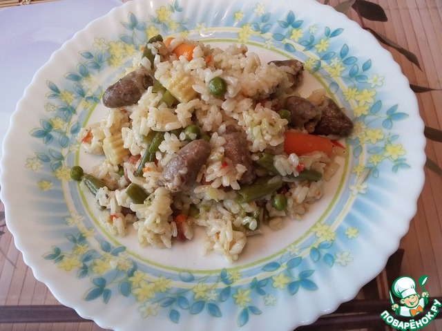 Рецепт «Рис с овощами и куриными сердечками а-ля ризотто»: