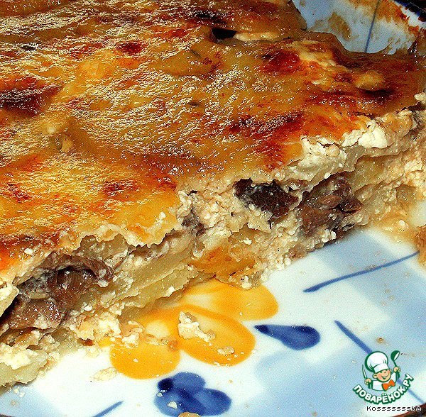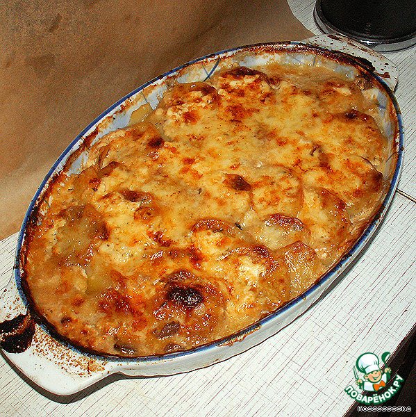 Вкусная и легкая запеканка по-французски из картофеля с грибами и сыром.