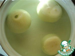 Луковицы аккуратно очистим, достаточно высоко срежем корневую часть, опустим в кипящую подсоленую воду и поварим примерно 5 минут.