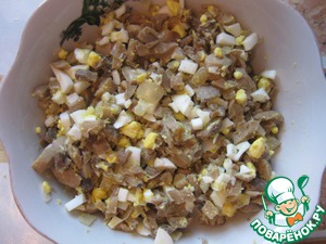 - Грибы (у меня маринованные шампиньоны) — 200 г