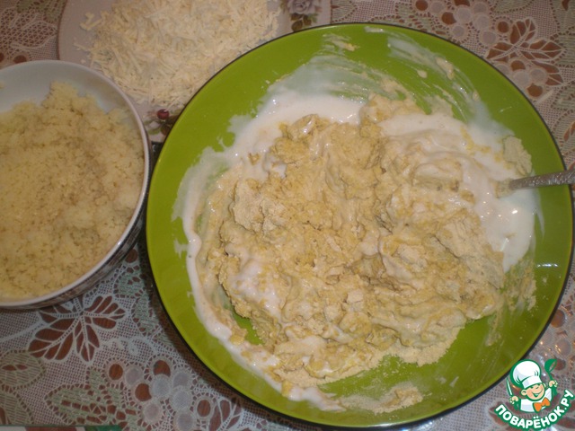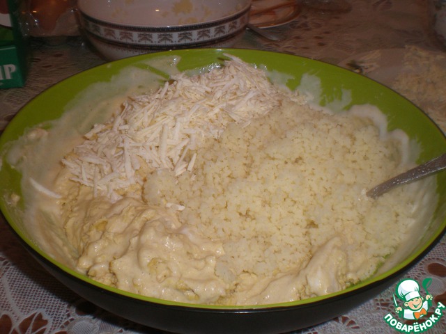 Добавляем к тесту натертый сыр и наш кус кус.