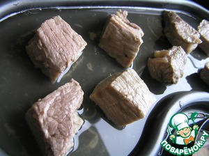 Мясо нарезать небольшими кусочками, готовить в пароварке около 30-35 минут.