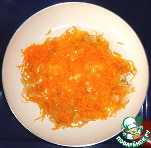Морковь натереть на средней тёрке, лук мелко нарезать.