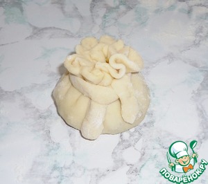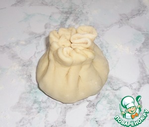 Противень застелить бумагой для выпечки, смазать растительным маслом и выложить мешочки. Поверхность мешочков смазать яичным белком или растительным маслом. Выпекать при температуре 170-180 градусов 30 минут.
