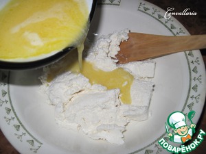 Творог растереть с растопленным сливочным маслом.