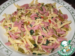 Колбасу или сосиски нарезать соломкой.