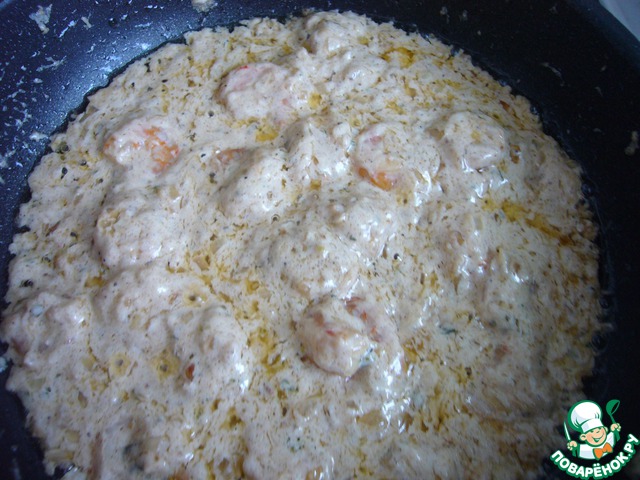 - Сливки (жирность-33%;100г-в грибную подливу; 50г-в креветочную) — 150 г