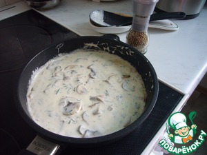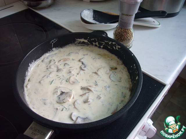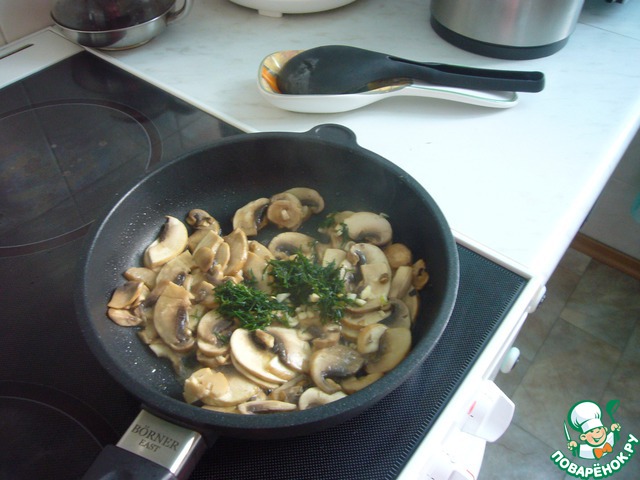 Я готовила первой грибную подливу, хотя последовательность можно выбрать любую.