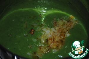 Брокколи сварилось, слить воду и пробить блендером до пюре.